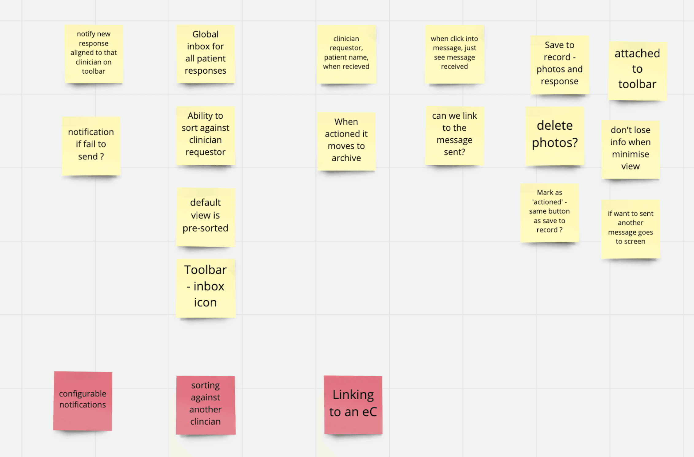 A collaborative Miro board served as the digital canvas for our discovery phase. We identified, categorised, and prioritised potential features and improvements crucial to the GP experience based on the feedback from interviews from internal and external Gps.