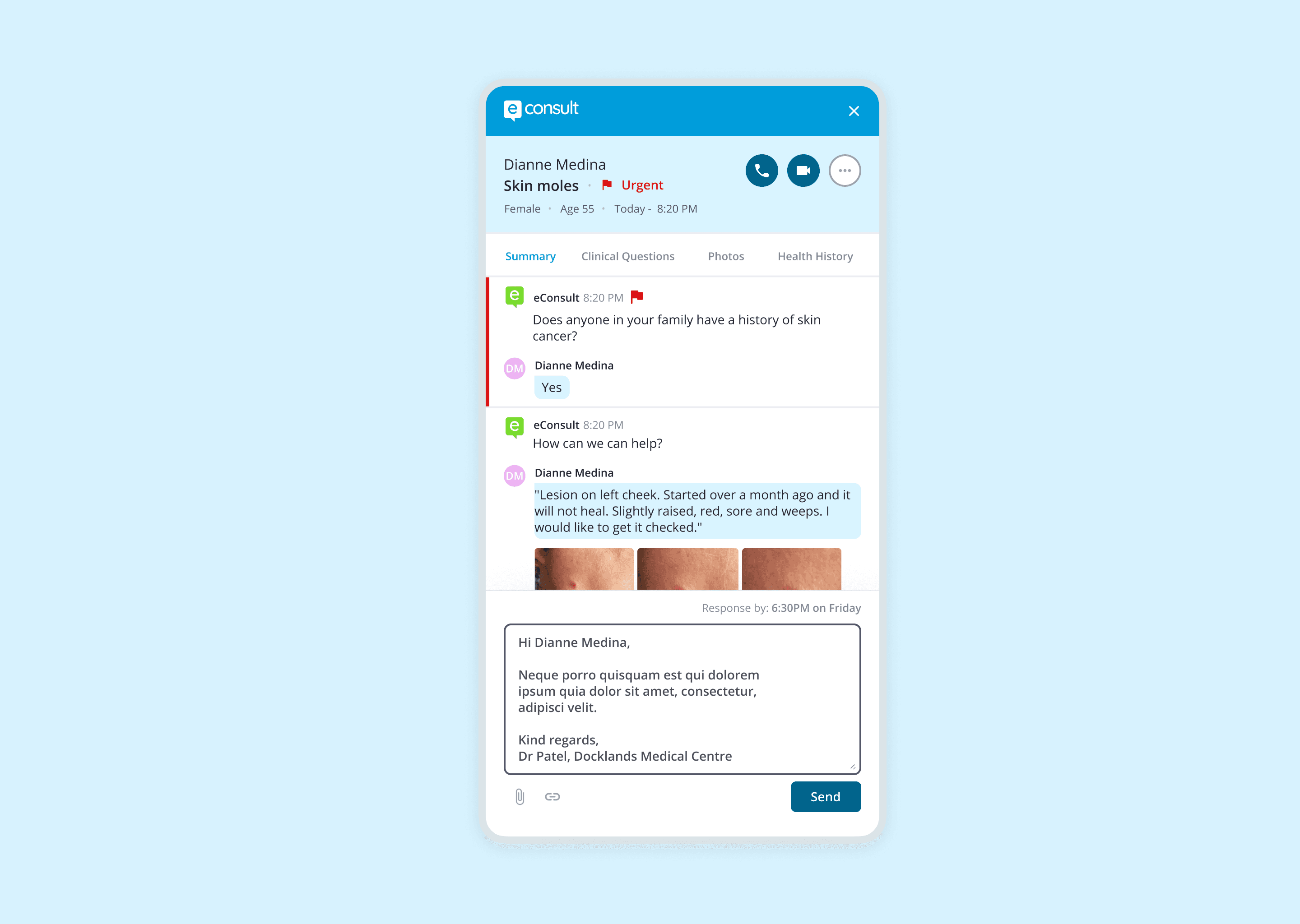 We asked the right questions to get accurate patient information, including high-quality photos whenever required. We aimed to make the process as simple as possible so that our GPs wouldn’t have to request additional information once the eConsult was submitted.
