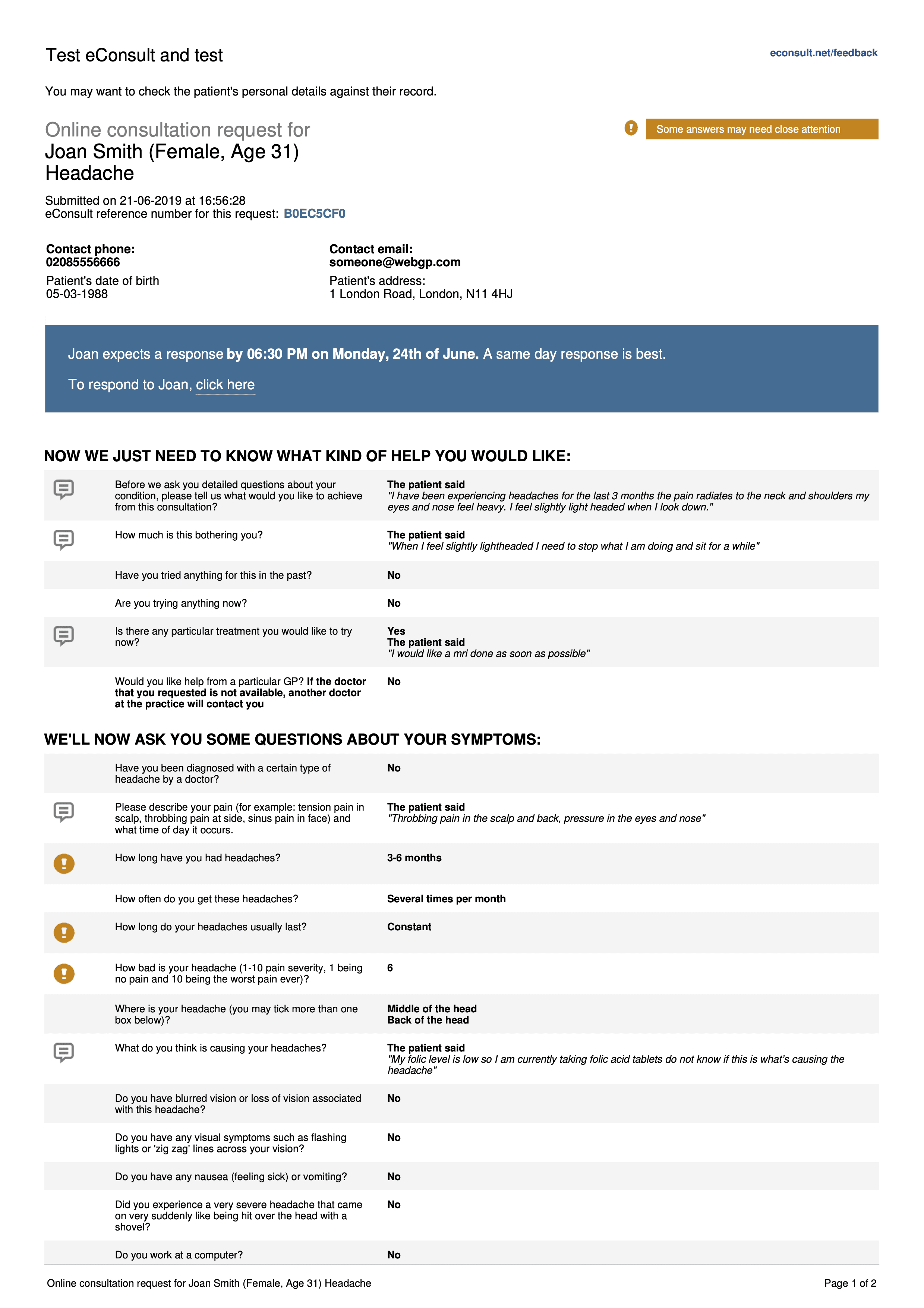 There are occasions when the GP needs more information from the patient after they submit their eConsult. This was when we discovered we needed a feature to “Allow the patient to reply once”.