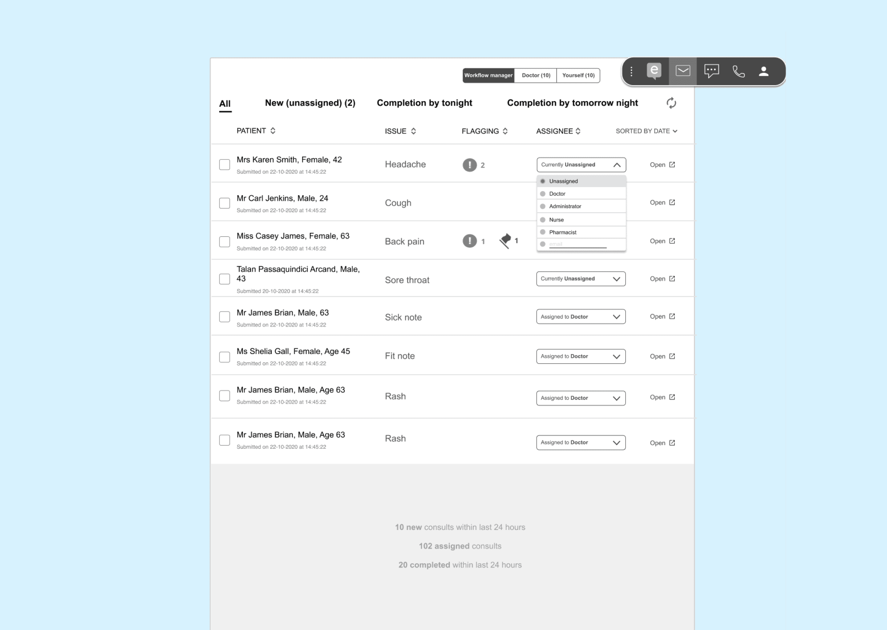 Inbox Customisation: We pinpointed the need for a global inbox capable of consolidating all patient responses, equipped with sorting capabilities and patient triage functions to streamline the GP's workflow.